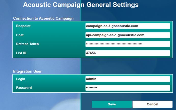 Update the Acoustic Campaign General Settings in SugarCRM