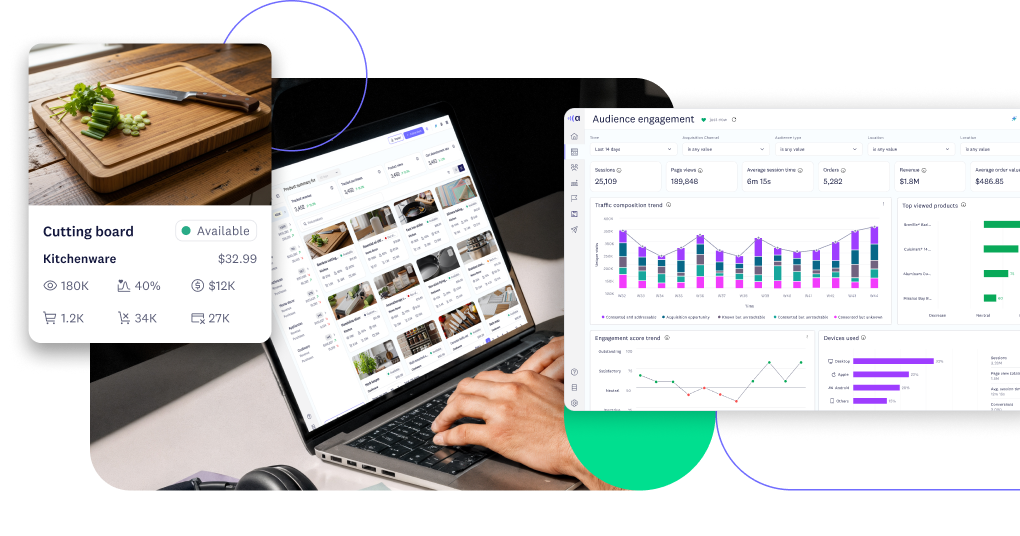 Visually manage your product catalog and see product performance in one place, track behavioral signals, and identify early spikes or dips in interest, so you can spot revenue opportunities before they’re missed. Learn more